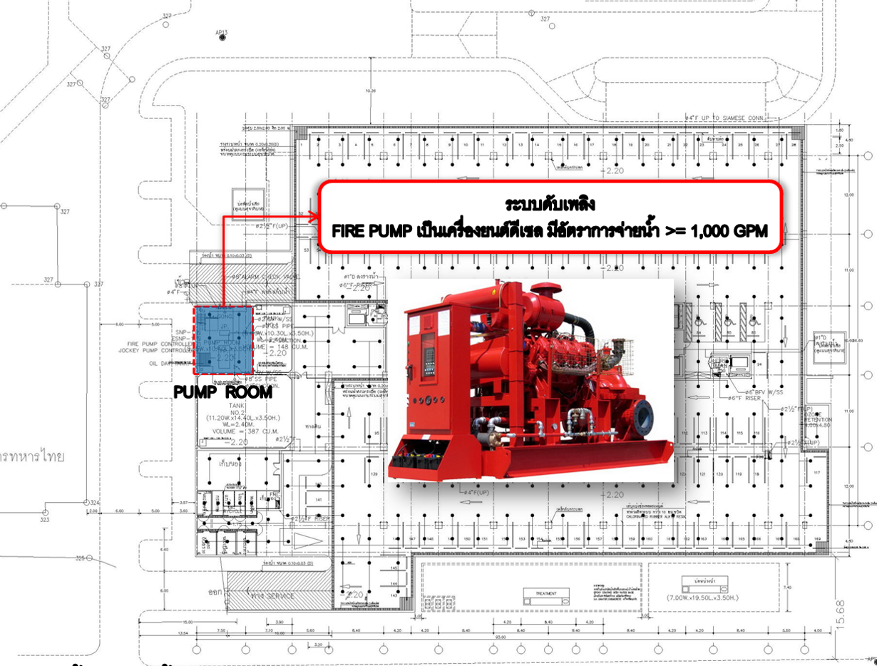 - ระบบดับเพลิงด้วยสายฉีดน้ำ (FIRE HOSE) รัศมี 30 เมตร ครอบคลุมทั่วบริเวณภายในอาคาร
