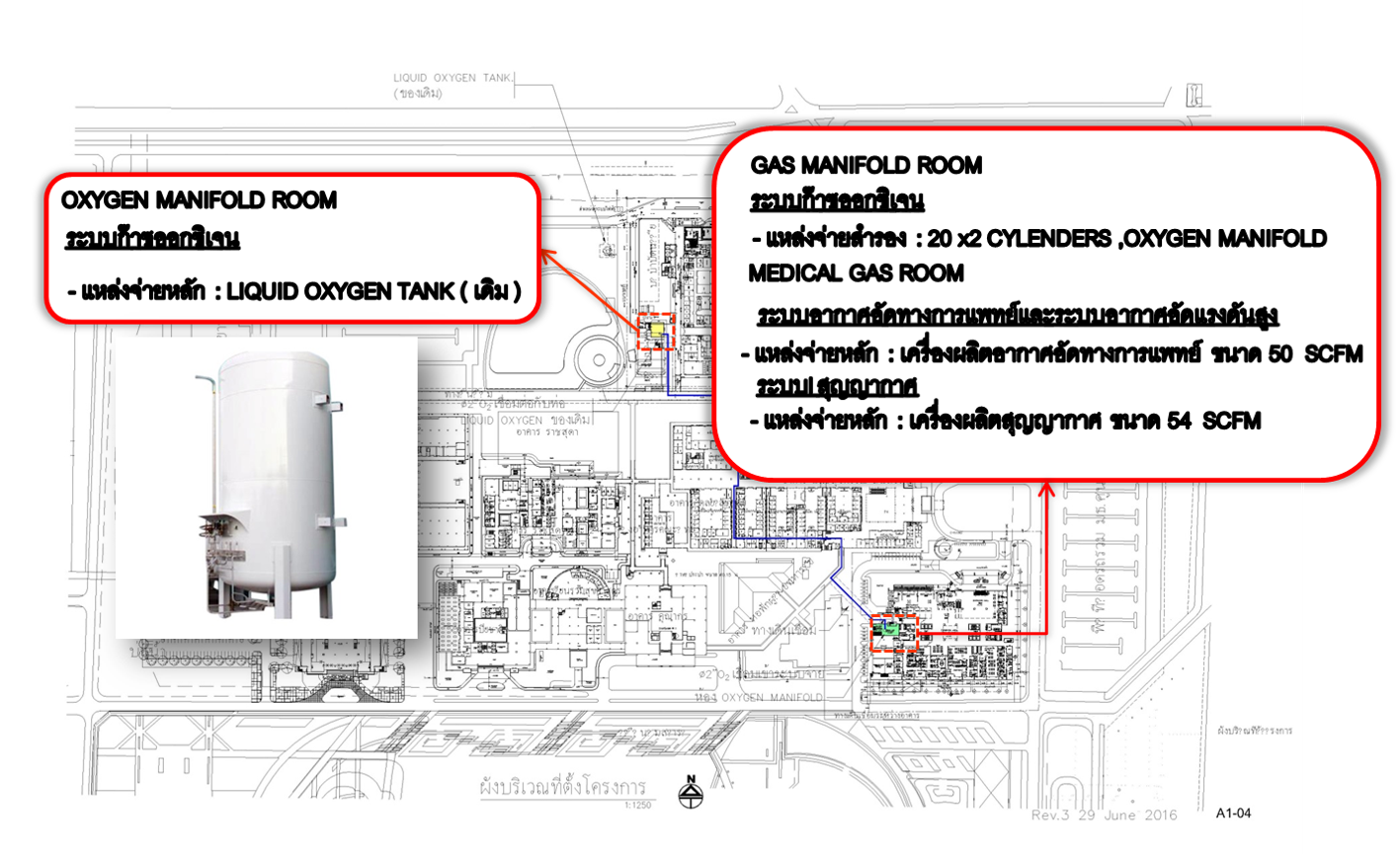 แหล่งจ่ายหลัก : LIQUID OXYGEN TANK (เดิม) บริเวณด้านหลังอาคารกิตติ