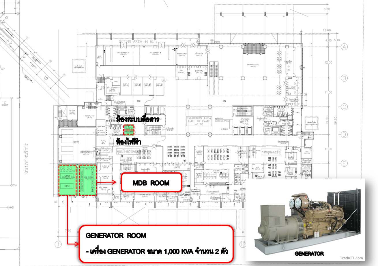 ก. เครื่องกำเนิดไฟฟ้าสำรอง (GENERATOR) ขนาด 1,000 KVA จำนวน 2 ชุด ใช้น้ำมันดีเซลเป็นเชื้อเพลิง