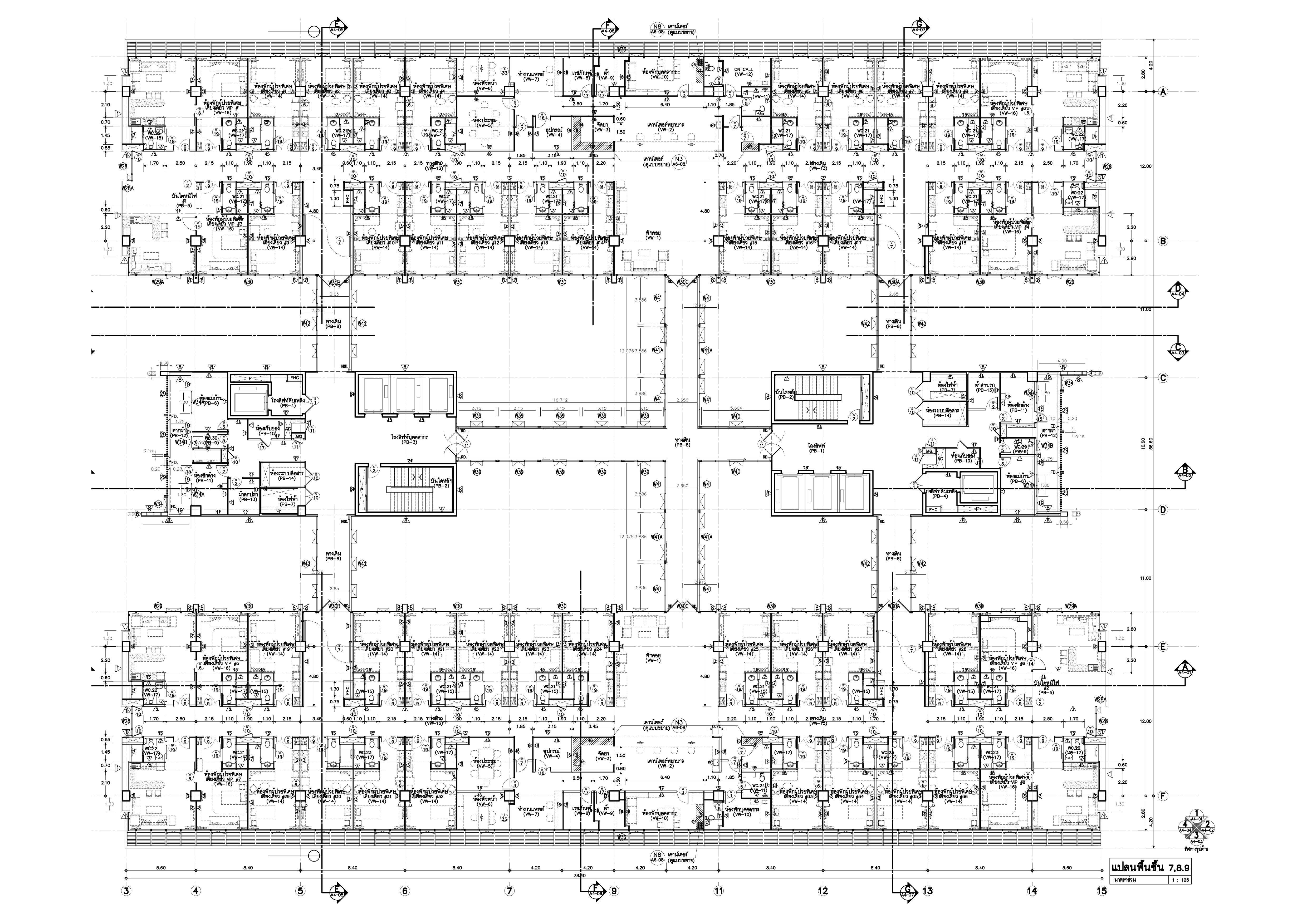 ชั้น 2 - ชั้น10  ระบบ POST TENSION SLAB ความหนา ประมาณ 25 ซม.