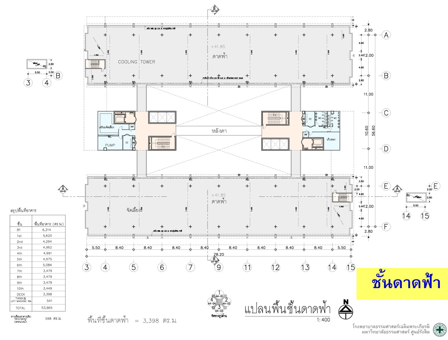- ชั้นดาดฟ้า พื้นที่รวมประมาณ 3,398 ตร.ม.