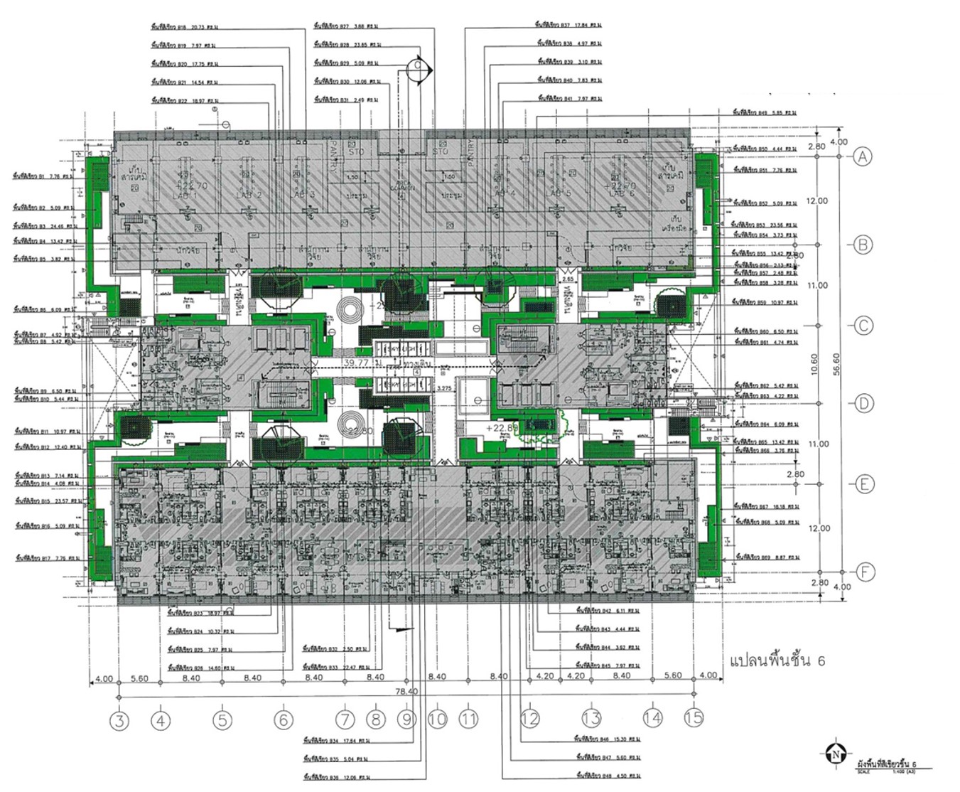 ผังพื้นที่สีเขียวบริเวณชั้น 6 ของโครงการ