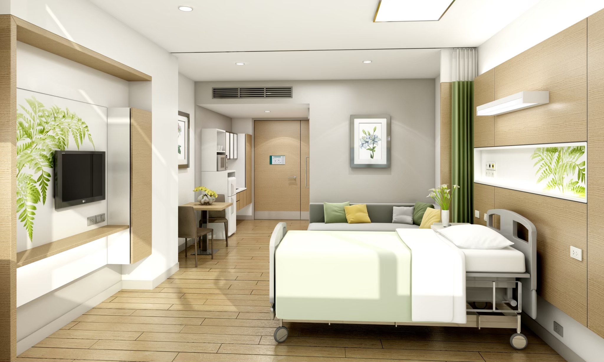 1. ห้องพักผู้ป่วยพิเศษชั้นละ 44 ห้อง (รวม 3 ชั้น 132 ห้อง)