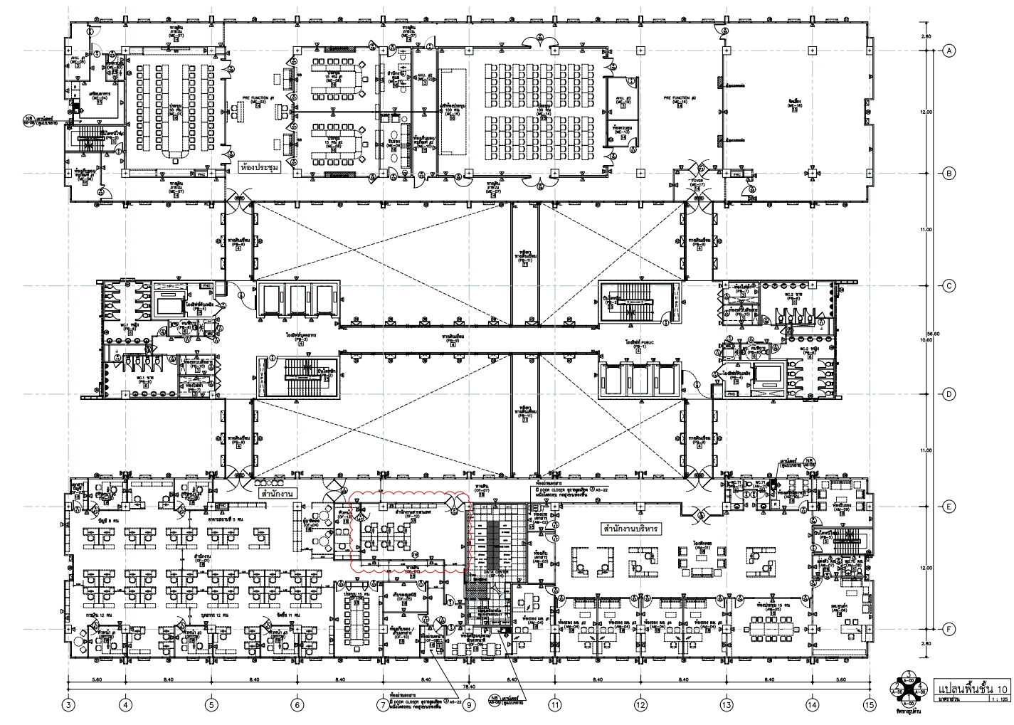 - ชั้นที่ 10 พื้นที่รวมประมาณ 3,449 ตร.ม.