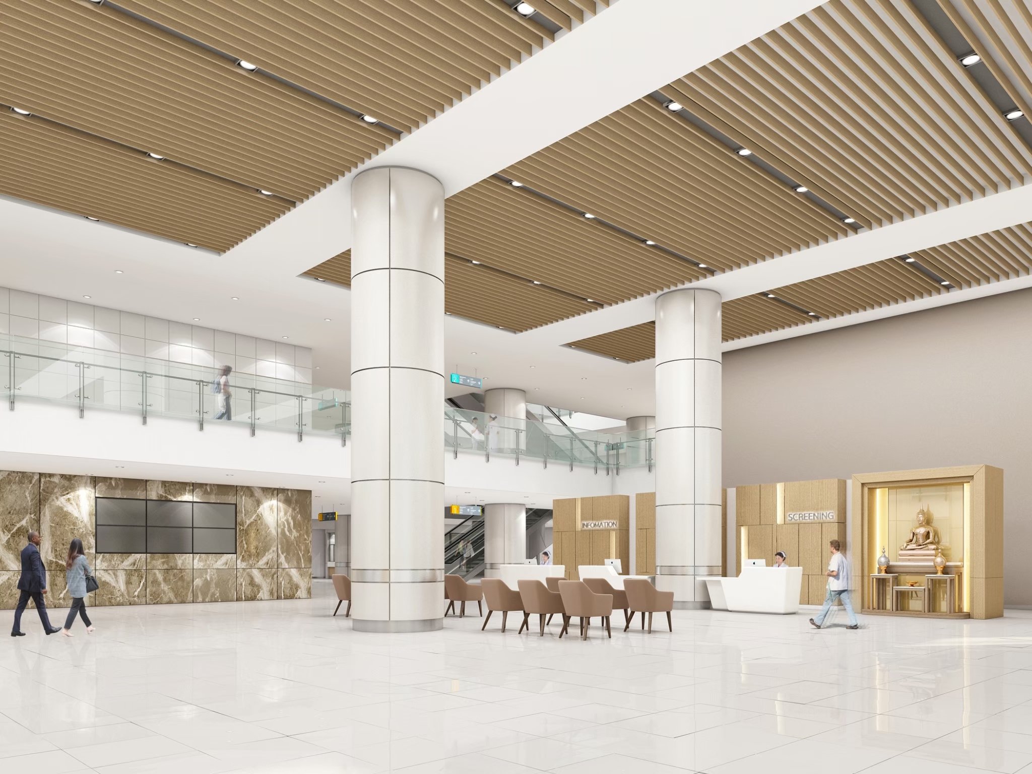 - ลิฟต์พยาบาล 3 ชุด บรรทุกสุทธิไม่น้อยกว่า 1,000 กิโลกรัม ชนิดมีห้องเครื่องลิฟต์ ที่ความเร็วไม่ต่ำกว่า 105 เมตร/นาที เปิด-ปิด 11 ชั้น